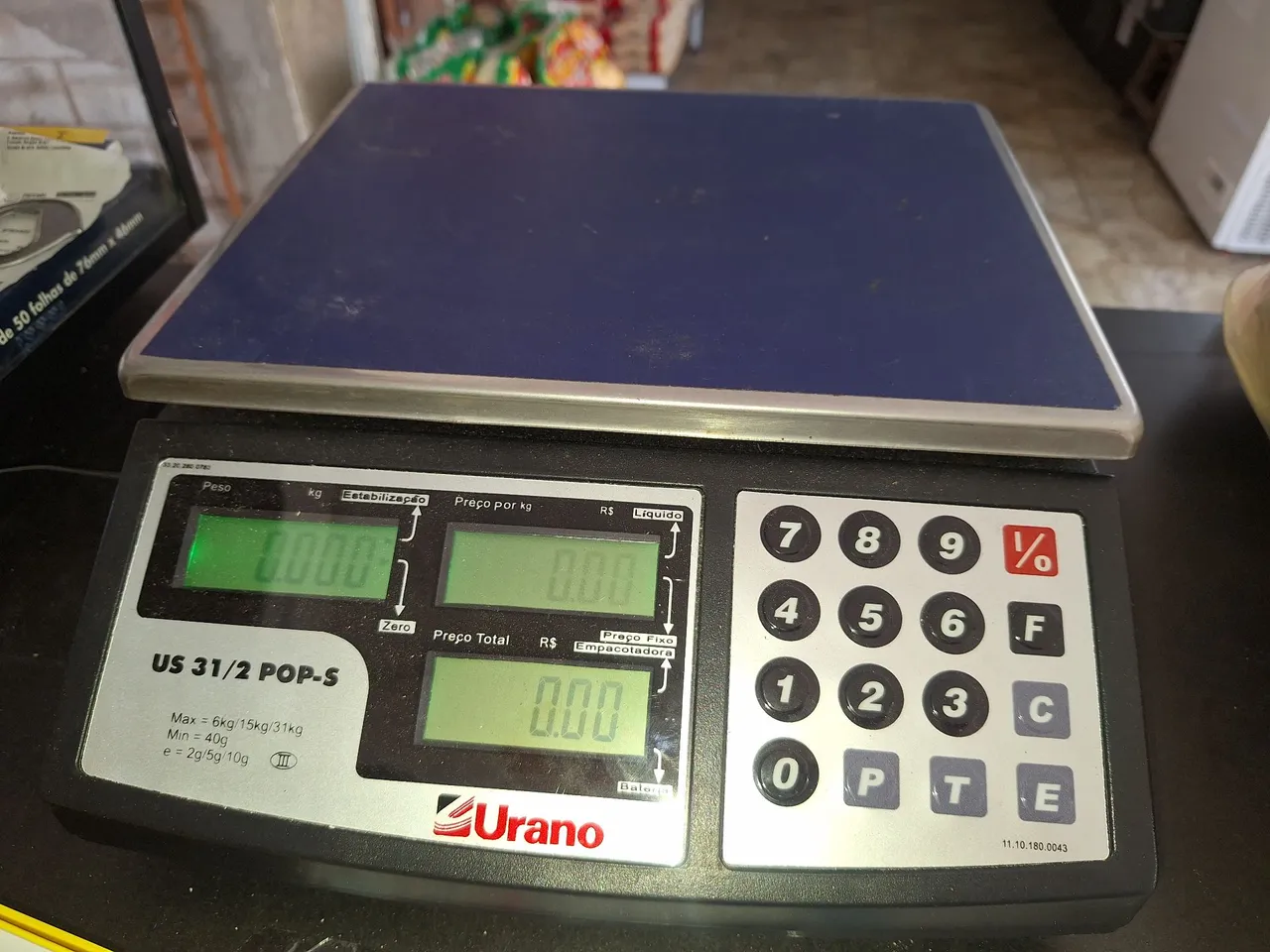Balança comercial Urano US 31/2 POP-S, ideal para comércios. Possui visor digital, facilitando a leitura e pesagem precisa dos produtos.
