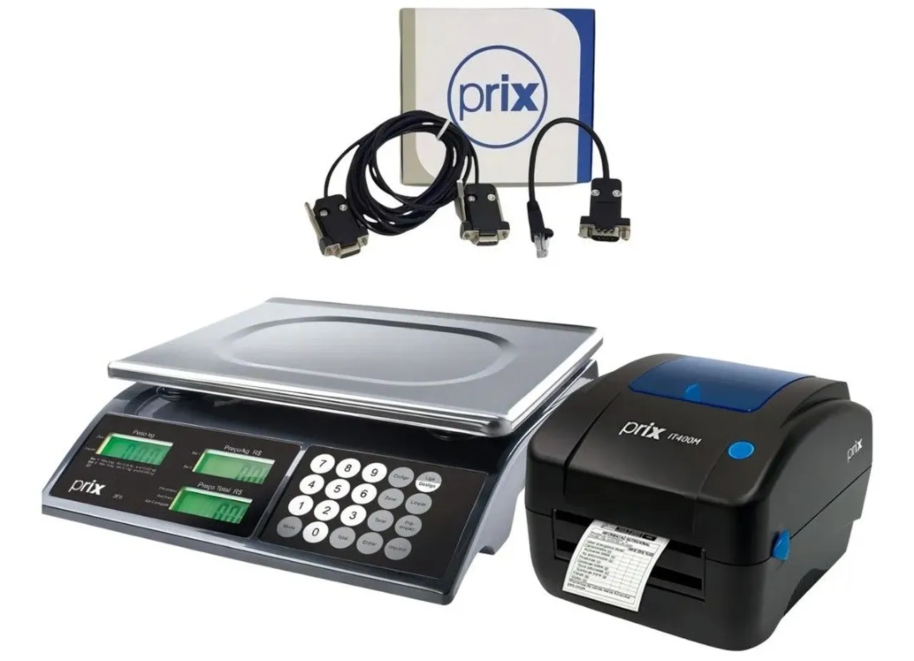 Conjunto completo para seu comércio! Balança Prix com visor digital e impressora de etiquetas para otimizar suas vendas. Ideal para padarias, mercados e lojas em geral.
