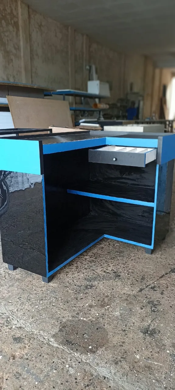 Balcão comercial moderno, design elegante com gaveta e prateleiras. Ideal para otimizar o seu espaço e impressionar seus clientes!