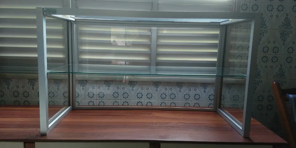 Caixa de proteção de vidro e alumínio para comércio. Em excelente condições de uso. Sem avaria.