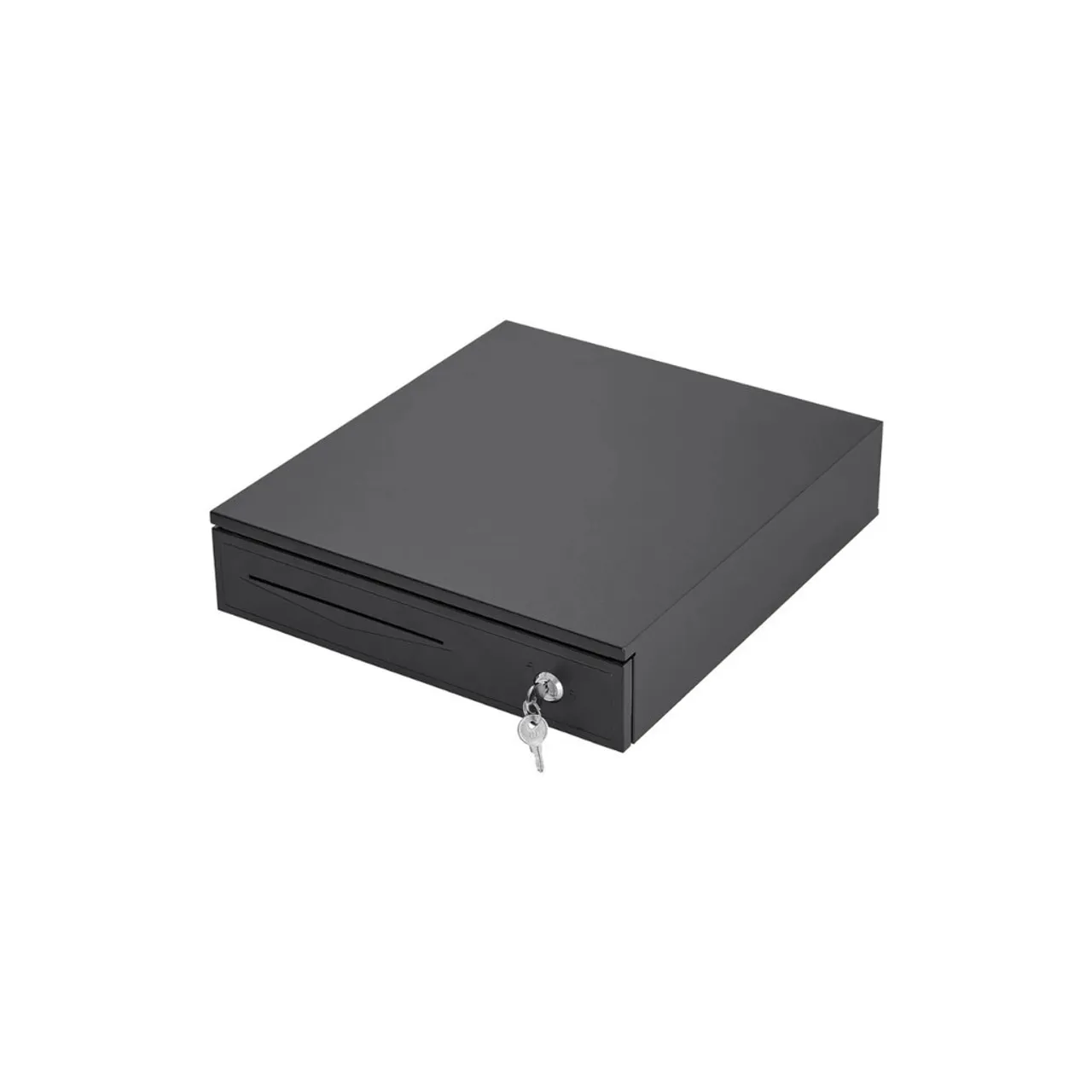 Gaveta de dinheiro com prendedores de cédulas em aço, porta-moedas removível e base antiderrapante. Ideal para organizar e proteger seu dinheiro com segurança e praticidade.