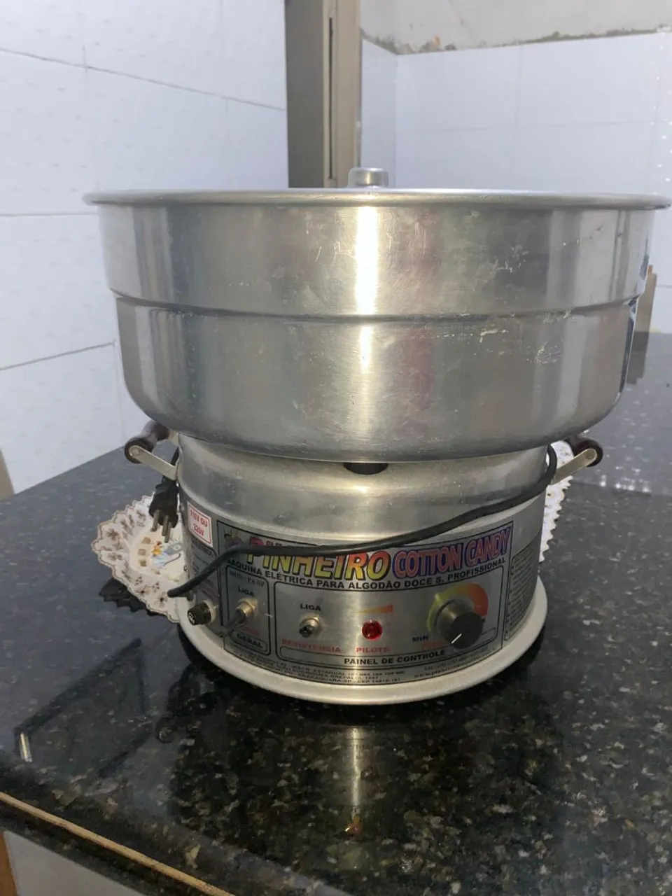 Prepare deliciosos algodões doces com a Máquina de Algodão Doce Pinheiro! Está em ótimo estado de uso! Ideal para eventos, festas e comércio. Fácil de usar e com design profissional, esta máquina garante algodão doce perfeito sempre.