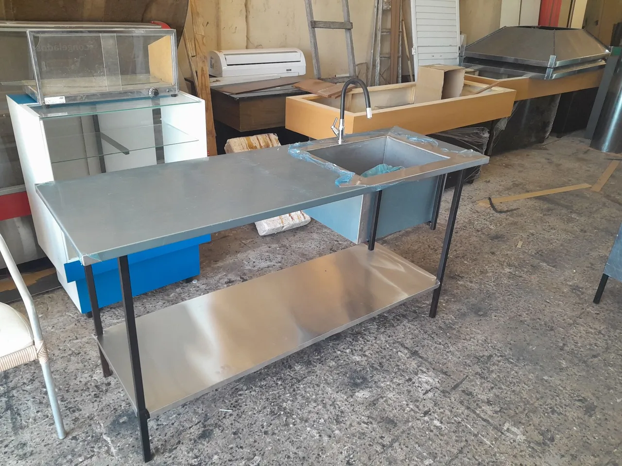 Mesa de trabalho em inox com pia