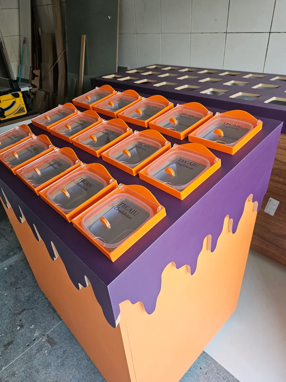 Também personalizamos as tampas de acrílico com a loja de cada loja.