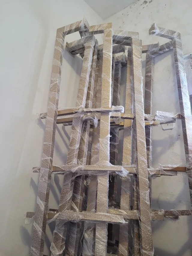 Par de Metalons NOVOS na cor dourado com cantoneiras para fixação de prateleira.