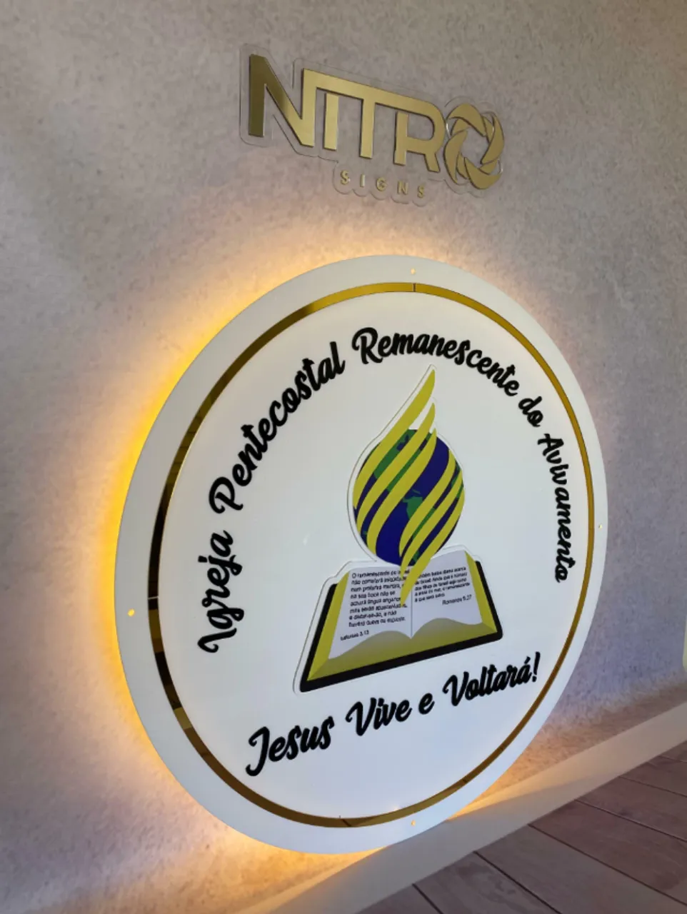 Placa de acrílico personalizada para a sua igreja! Design moderno e elegante, perfeita para destacar a identidade visual e acolher os fiéis. Deixe a sua igreja mais bonita e convidativa!