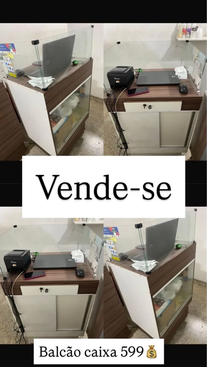 Balcão caixa completo para otimizar o seu comércio. Design moderno e funcional, ideal para organizar e expor seus produtos.