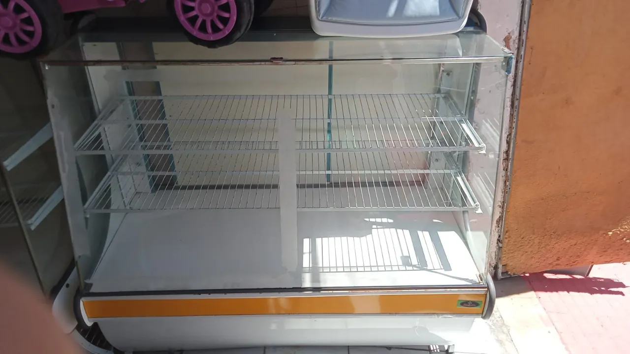 Balcão expositor seminovo, ideal para manter seus produtos na expostos, com ótimo espaço interno e design moderno. Perfeito para o seu negócio!