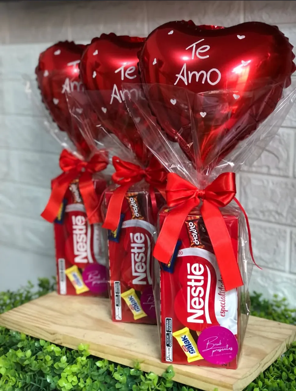 Surpreenda quem você ama com a Caixa Mimo! Um presente especial com chocolates deliciosos e balões em formato de coração com a mensagem "Te Amo". Perfeito para celebrar o amor e a amizade!