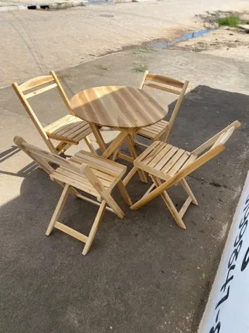 Jogo de mesa com cadeiras redonda de madeira maciça desmontável para lanchonete pizzaria restaurante área de lazer bar.