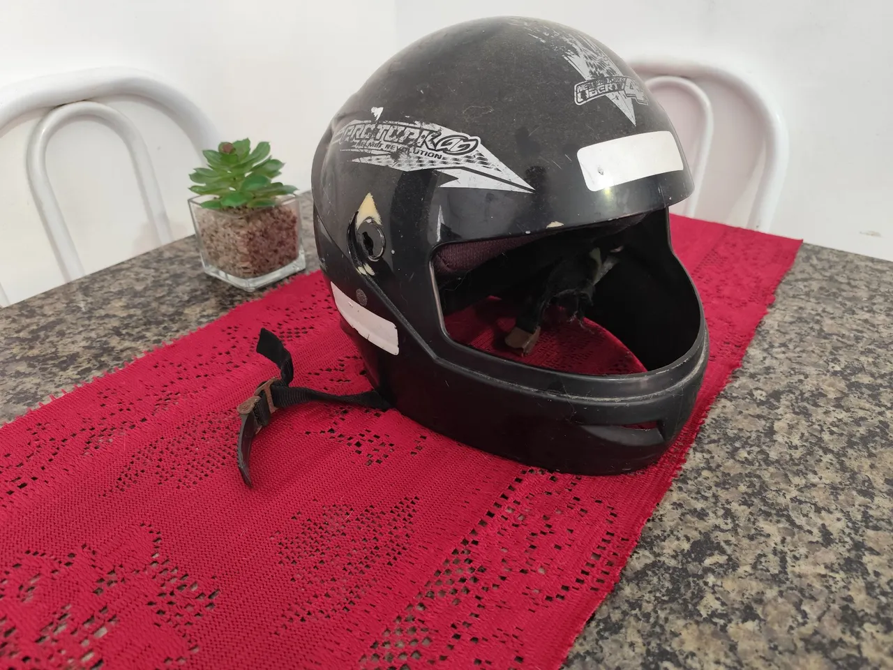 Capacete usado. Falta viseira e tem que trocar o forro interno. Faço a entrega dependendo da localização. 7999... ver número