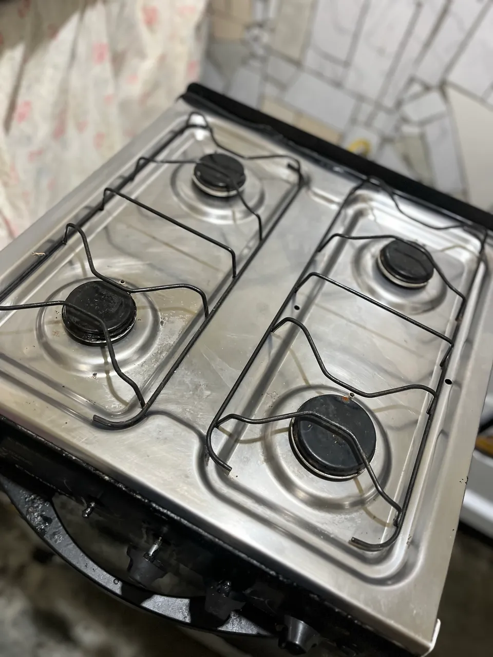O fogão pegou fogo na parte superior, por isso NÃO está em perfeito funcionamento.