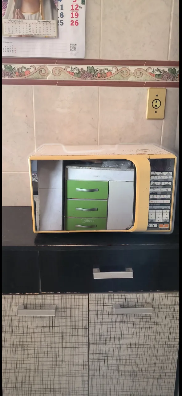 Micro-ondas Midea, com algumas teclas sem pegar, mais funciona, esquenta, aceito cartão.