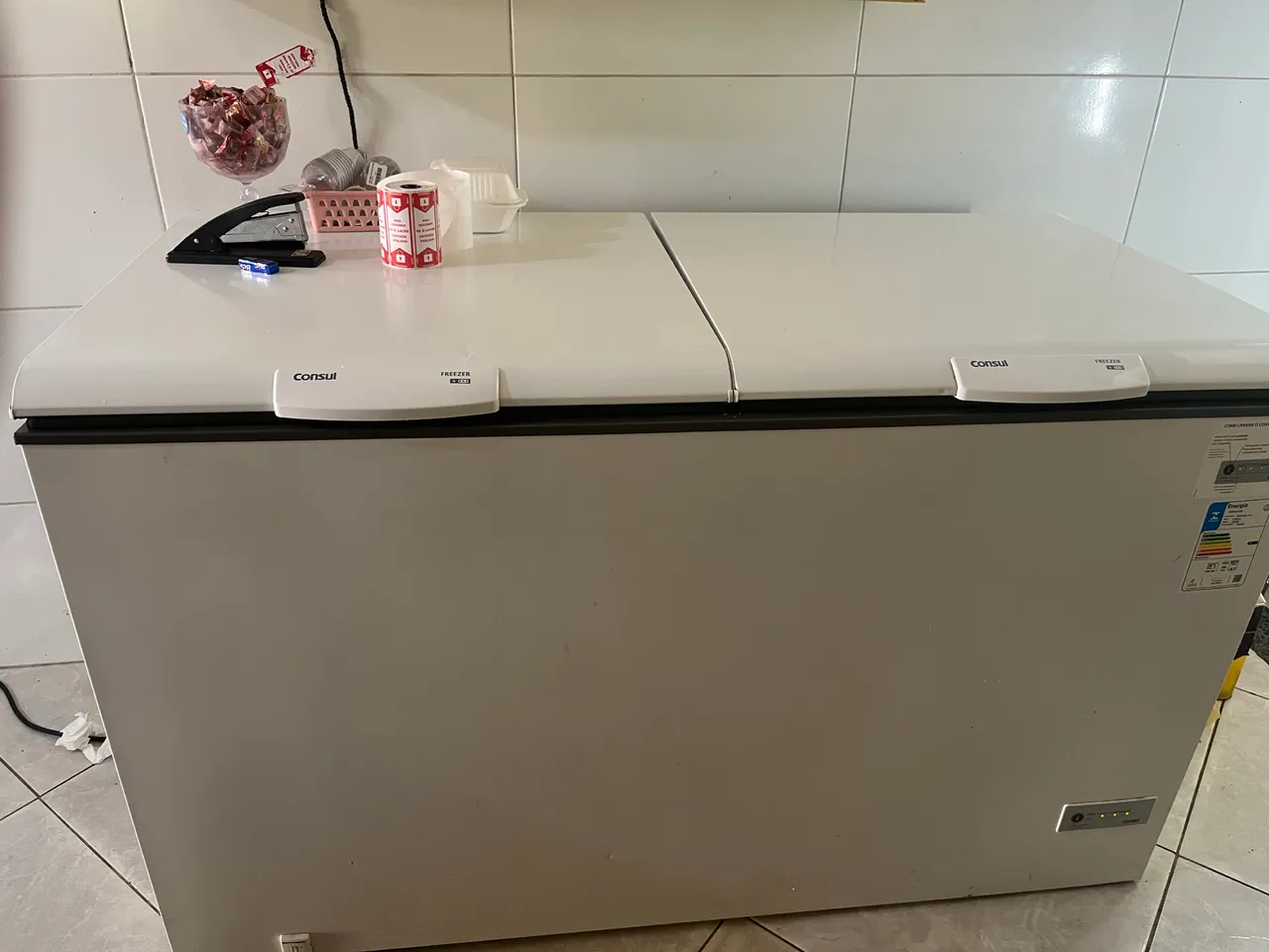 Freezer Consul 220V em perfeito estado, ideal para conservar seus alimentos com eficiência e praticidade. Design moderno e alta capacidade de armazenamento.