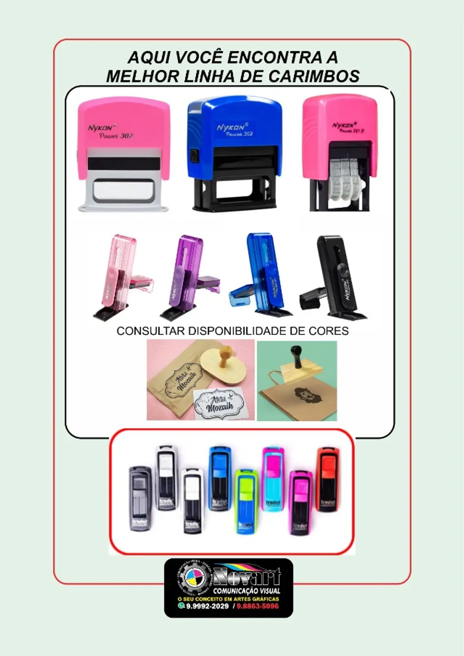 Encontre a melhor linha de carimbos para o seu escritório! Carimbos de alta qualidade, duráveis e com design moderno. Consulte a disponibilidade de cores e modelos. crachás e cartões de visita.
