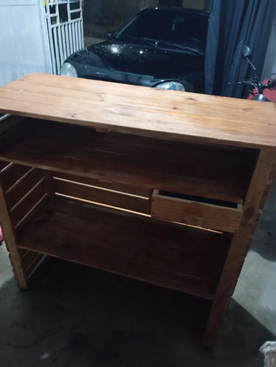 Lindo balcão de madeira, perfeito para organizar seu escritório com estilo e praticidade. Design rústico e funcional, ideal para otimizar o espaço e adicionar um toque de elegância ao ambiente.
