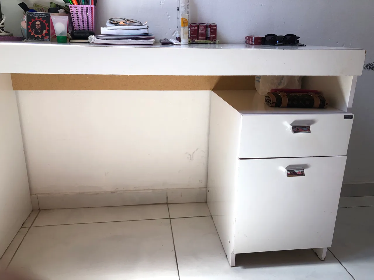 Linda escrivaninha branca, perfeita para seu escritório ou home office. Design moderno e funcional, com gavetas espaçosas para organização.