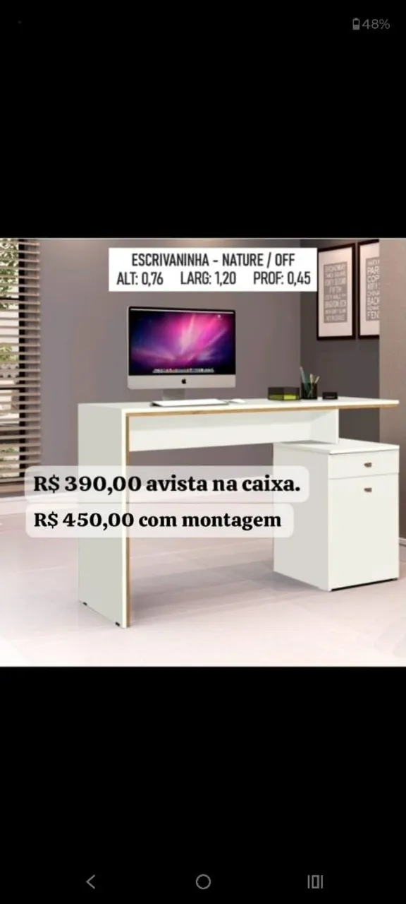 Apresentamos a escrivaninha perfeita para o seu escritório! R$ 390,00 avista na CAIXA R$ 450,00 avista com MONTAGEM Contato