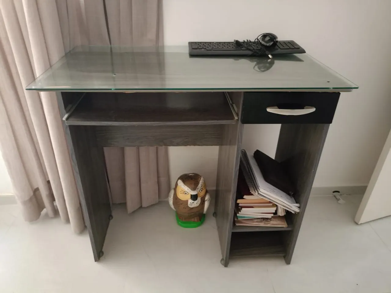 A escrivaninha perfeita para o seu escritório! Design moderno, com tampo de vidro e gaveta para organizar seus objetos. Ideal para otimizar o espaço e trazer funcionalidade ao seu ambiente de trabalho.