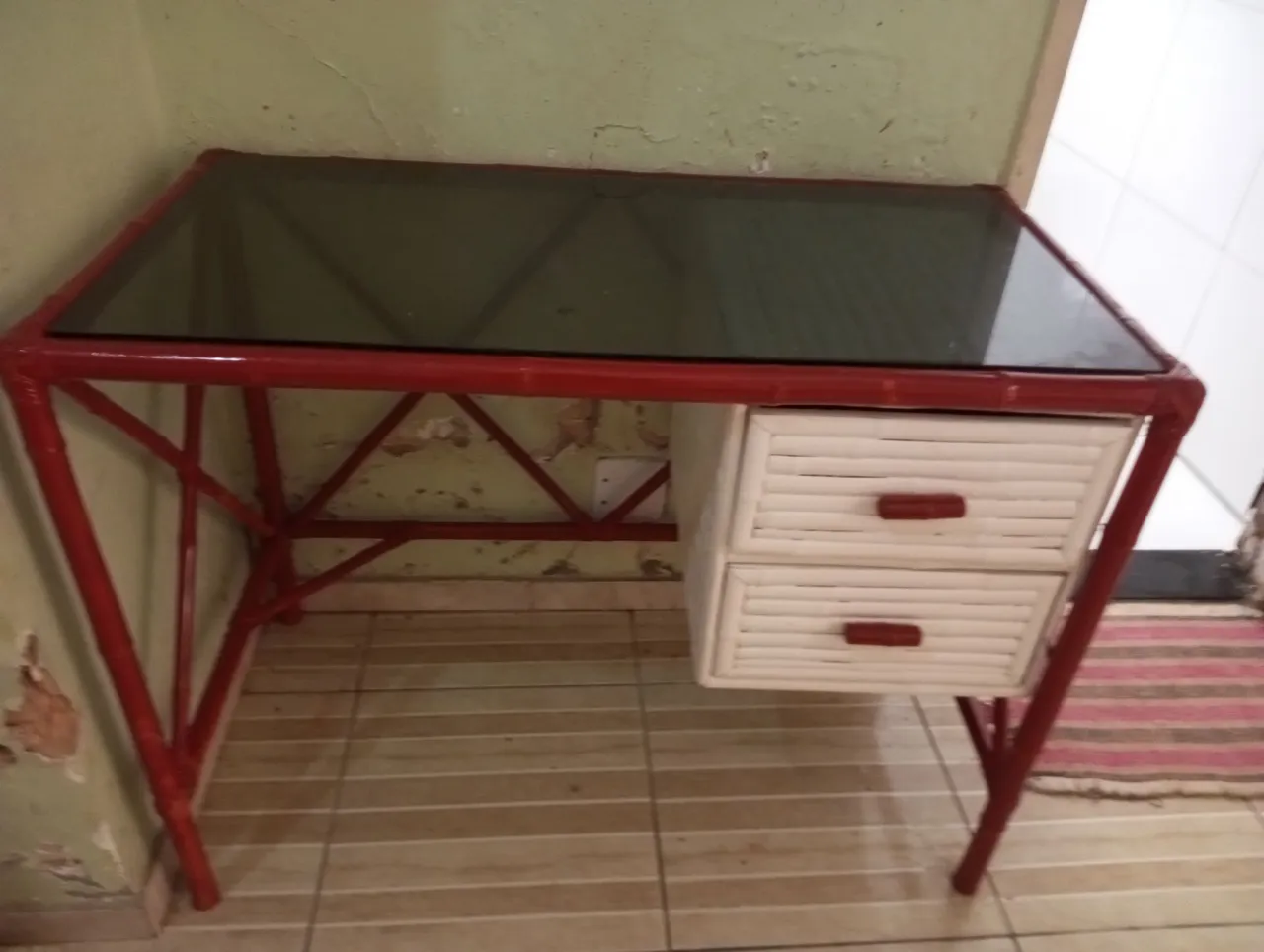 Linda escrivaninha de escritório, perfeita para seu ambiente de trabalho. Design moderno e funcional, com gavetas para organização. Ideal para quem busca praticidade e estilo. Material. Bambu