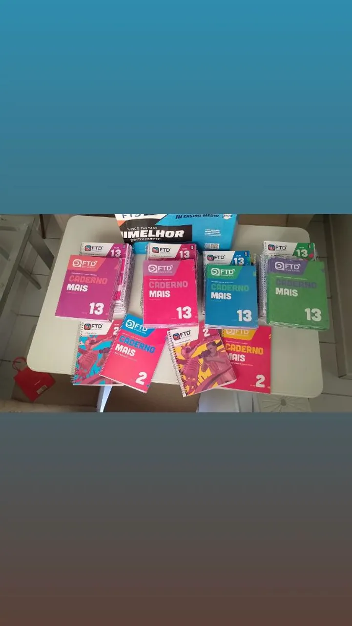 Conjunto de cadernos escolares FTD, ( sistema de ensino) ideais para o 2° Ano Ensino Médio. Perfeitos para organização e estudos, com design moderno e folhas de alta qualidade. Coleção completa a maioria ainda embalados na caixa.