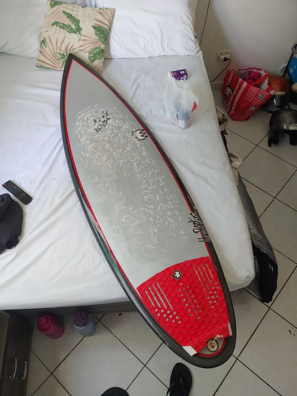 . Prancha surf toda revestida com fibra de carbono / mais leve e resistência. 5.10 de tamanho e 30 litros de volume, 3 quilhas UQUABONA original FCS2 média. deck colado novo .. cordinha leash.