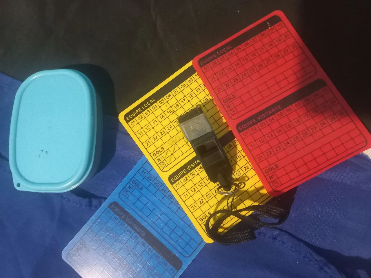 Apito e cartões para jogos de futebol, basquete, vôlei e outros esportes. Ideal para árbitros e para quem busca equipamentos para partidas.