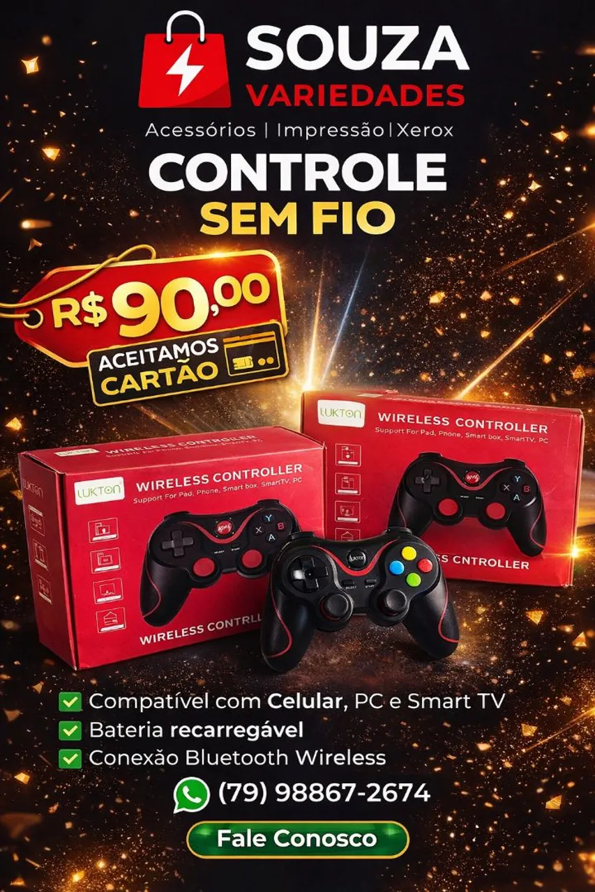 Controle Wireless compatível com PC, Celular e Smart TV. Perfeito para jogos e navegação. Design ergonômico e confortável. Conexão Bluetooth rápida e estável.