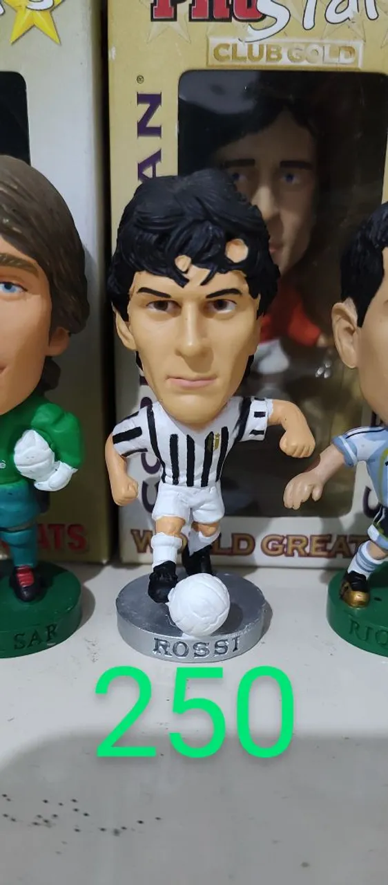 Miniatura do craque italiano Rossi, figura icônica do futebol mundial. Perfeita para colecionadores e amantes do esporte. (Paolo Rossi foi o carrasco do Brasil na Copa de 82)