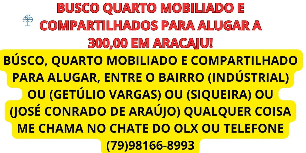 Estou a procura de um, quarto mobiliado ou compartilhados para alugar, conforme está na descrição na postagem.