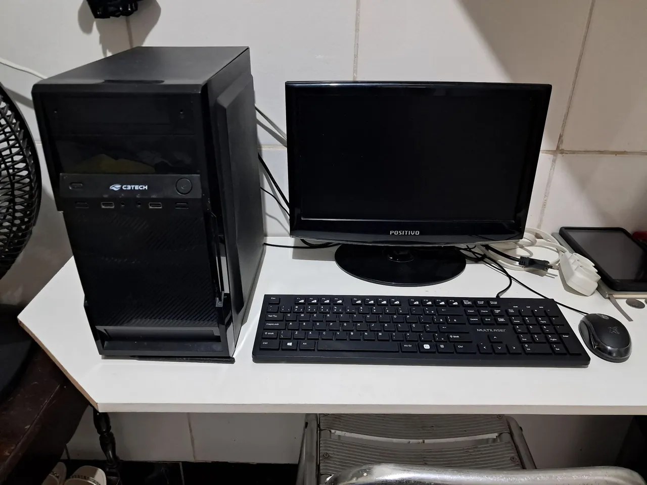 Computador completo ideal para trabalho! Perfeito para suas tarefas diárias. Monitor Positivo, teclado e mouse inclusos. apenas com uma mancha na tela!