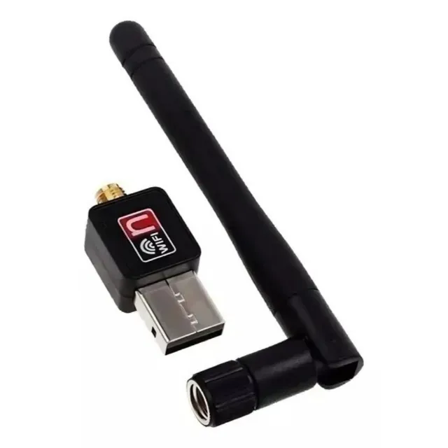 Adaptador Wi-Fi USB Nano com antena externa para aumentar o sinal do seu computador. Ideal para conectar seu computador a redes sem fio e navegar na internet com mais velocidade e estabilidade.