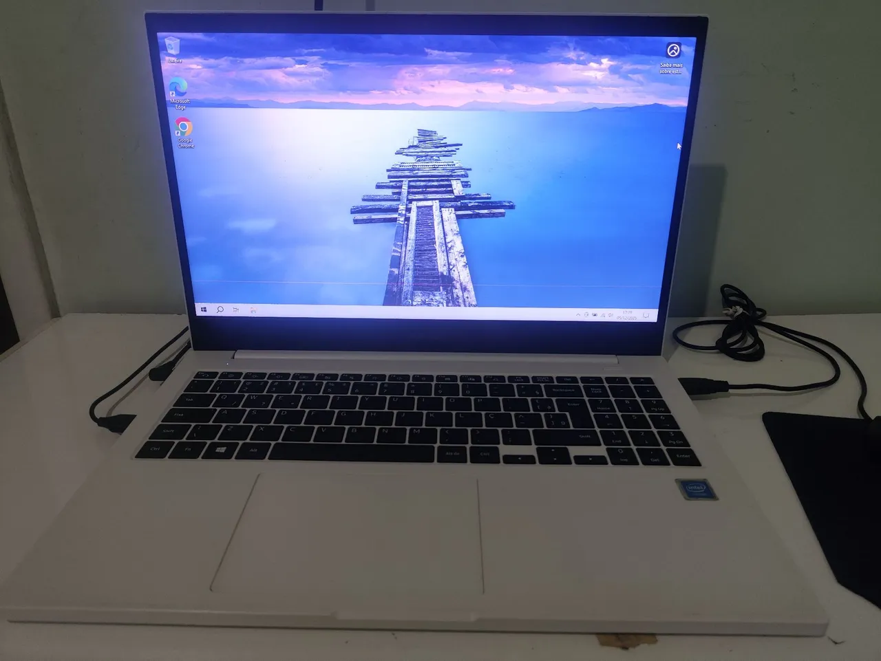 Notebook Samsung está com um defeito na tele que aparece uma linha branca quando liga mas ela some depois de menos de 5 minutos, 8 de ram 512 de SSD muito bom para estudar e trabalhar com carregador e capa para transporte, aceito troca em vídeo game.