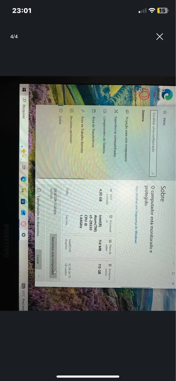 Notebook Positivo com processador Intel Atom x5-Z8330, 4GB de RAM e 115GB de armazenamento. Ideal para tarefas do dia a dia, navegação na internet e estudos. 3 teclas sem funcionar