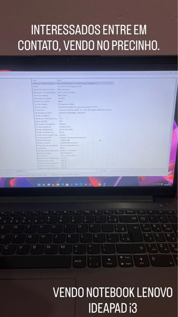 Notebook Lenovo Ideapad, com processador Intel Core i3. Ideal para estudos e jogos, eu coloquei que só tem 8 de ram mais tem 12 ao total? A OLX não tem a opção de colocar 12.