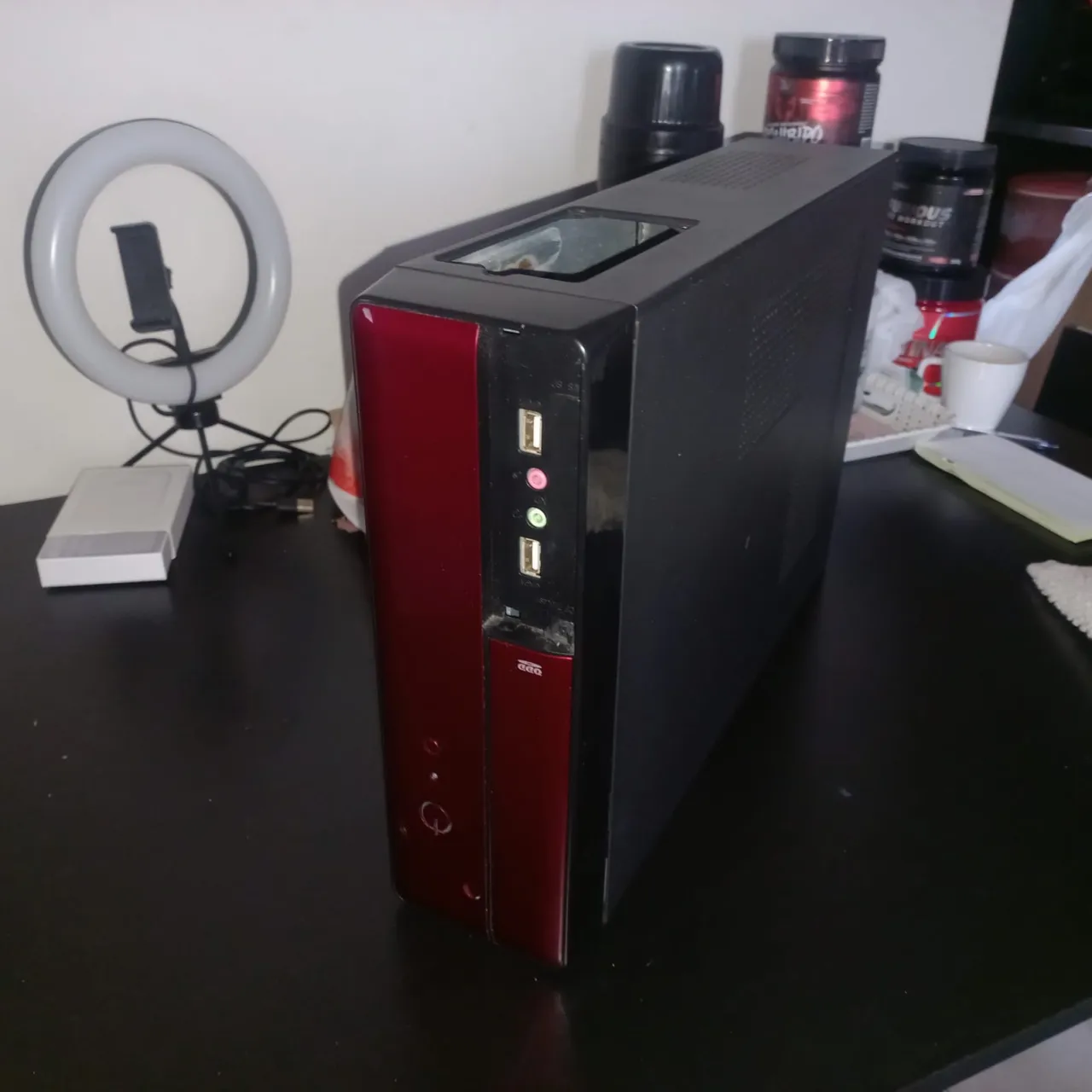 Gabinete slim pixxo HTPC compacto Apenas o gabinete ,cor preto com detalhe frontal em vermelho. Contabilidade.. com placa mãe micro atx e mini itx
