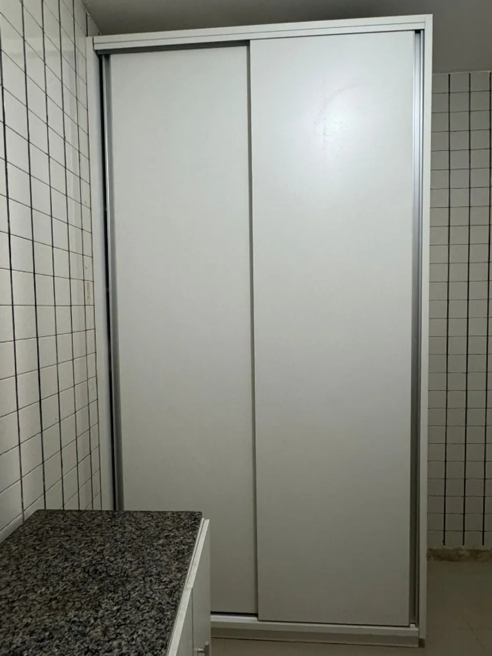 Roupeiro em MDF branco com portas de correr, design moderno e funcional. Ideal para otimizar o espaço do seu quarto ou de sua área de serviço, medindo 153cm x 64cm x 274cm.