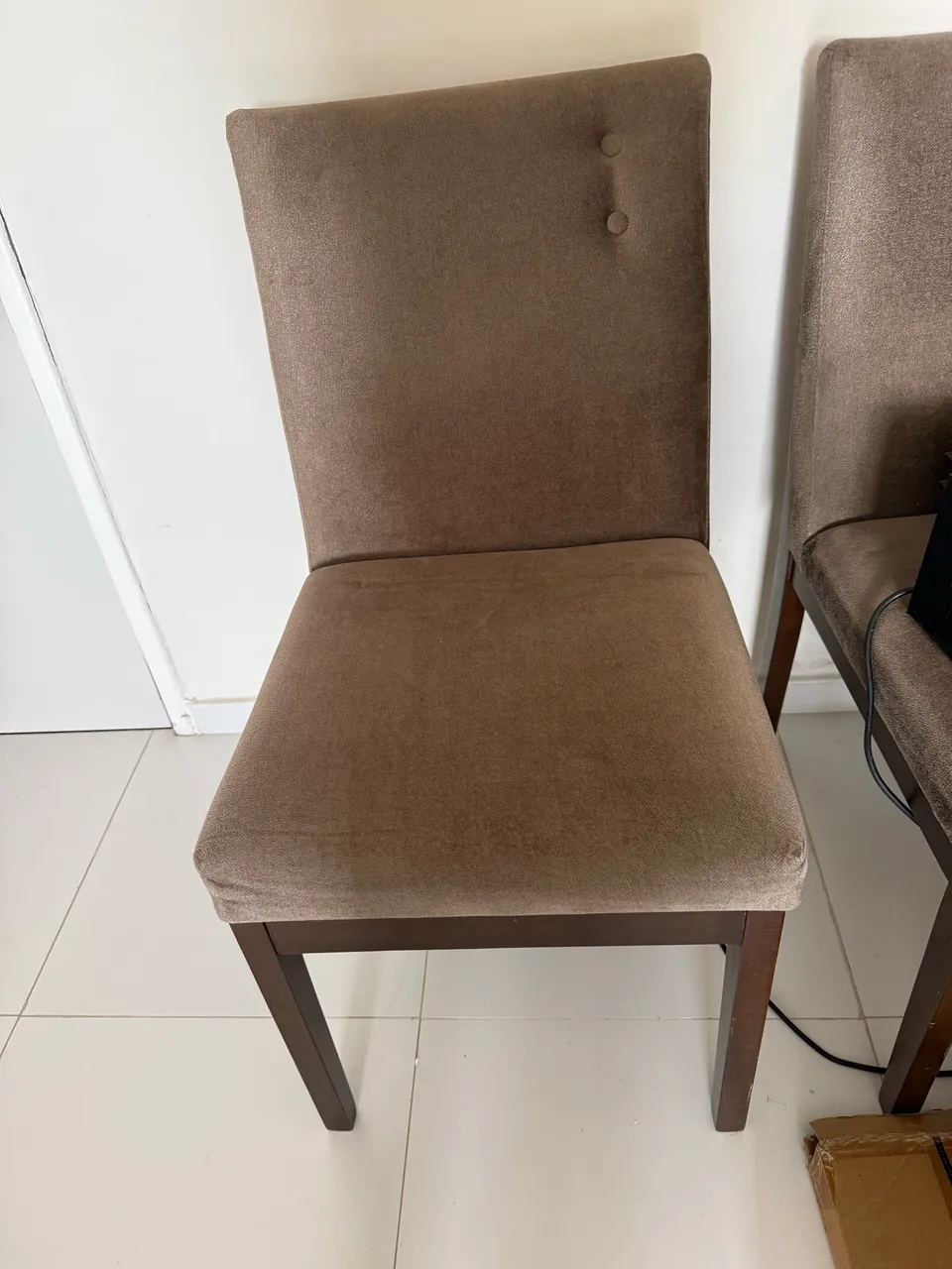Conjunto com 2 cadeiras de madeira estofada, ideal para sua sala de jantar. Design clássico e confortável para o seu dia a dia. Preço pelas duas cadeiras.