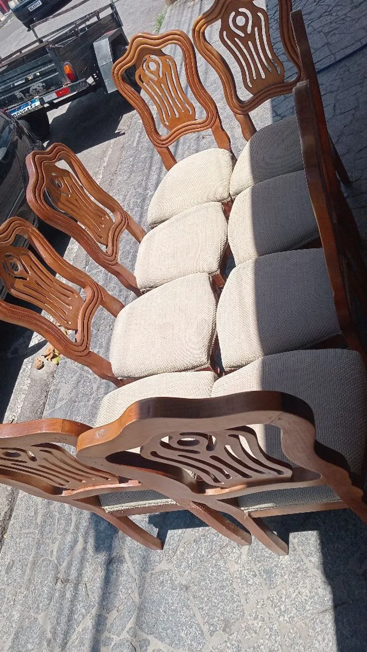 Vendo 8 cadeiras de madeira em ótimo estado de conservação valor 2.000 e aceito cartão de credito