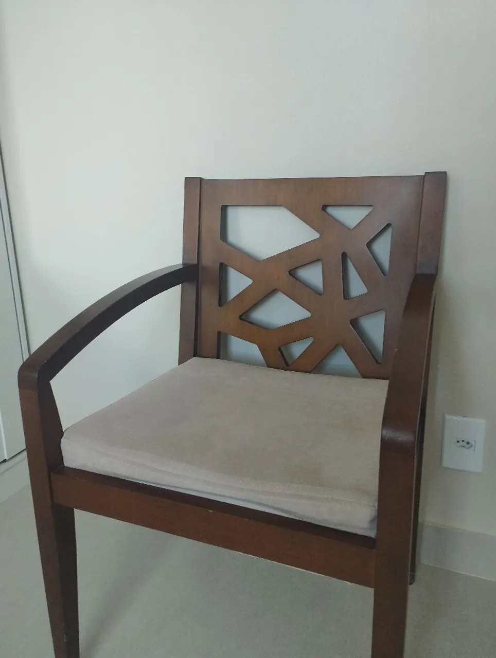 Linda cadeira de madeira, com design elegante e confortável para sua casa.