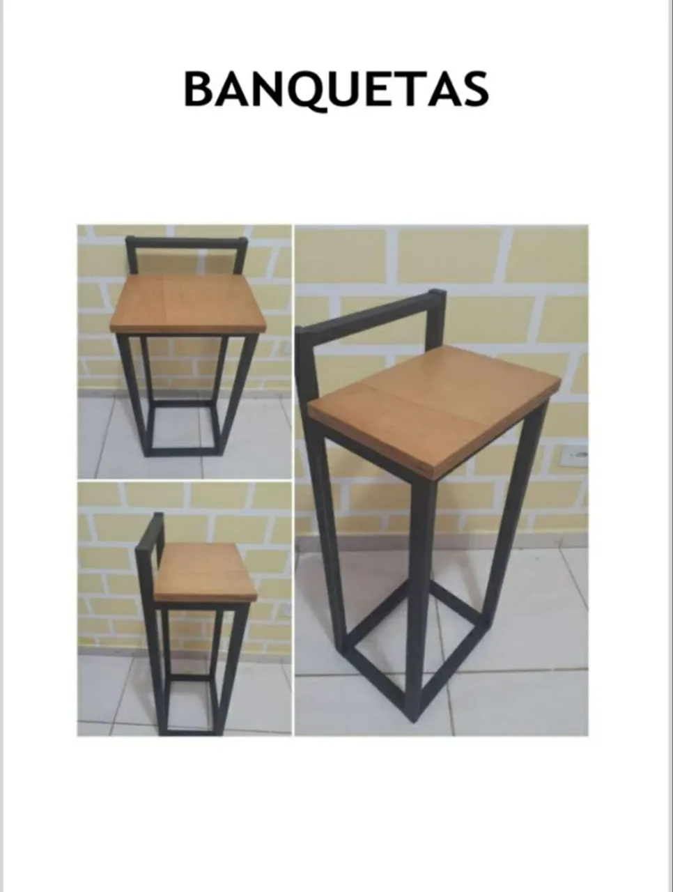 Banquetas com estrutura em metal resistente e assento em madeira. Design moderno e elegante para diversos ambientes.
