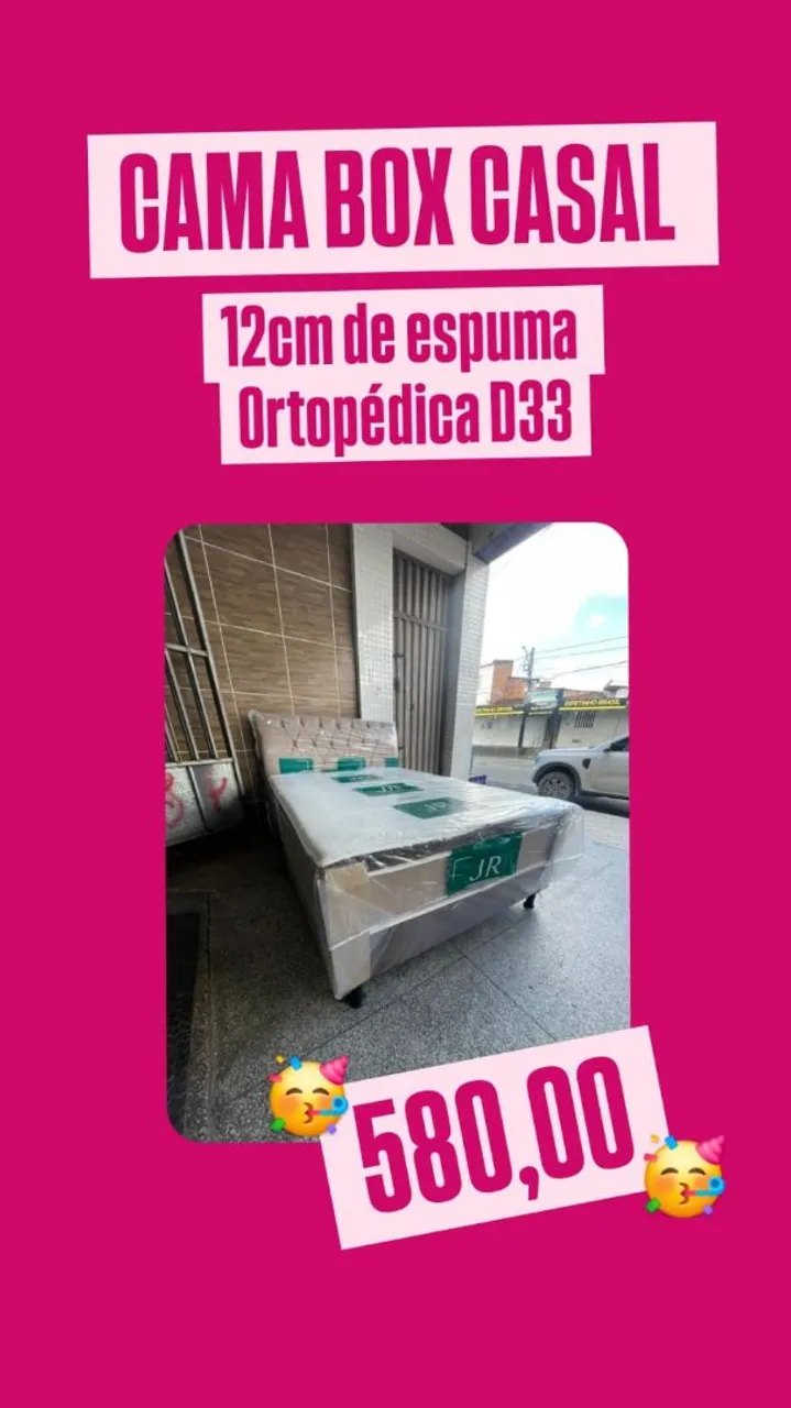 Cama Box Casal com 12cm de espuma ortopédica D33. Conforto e qualidade para suas noites de sono.