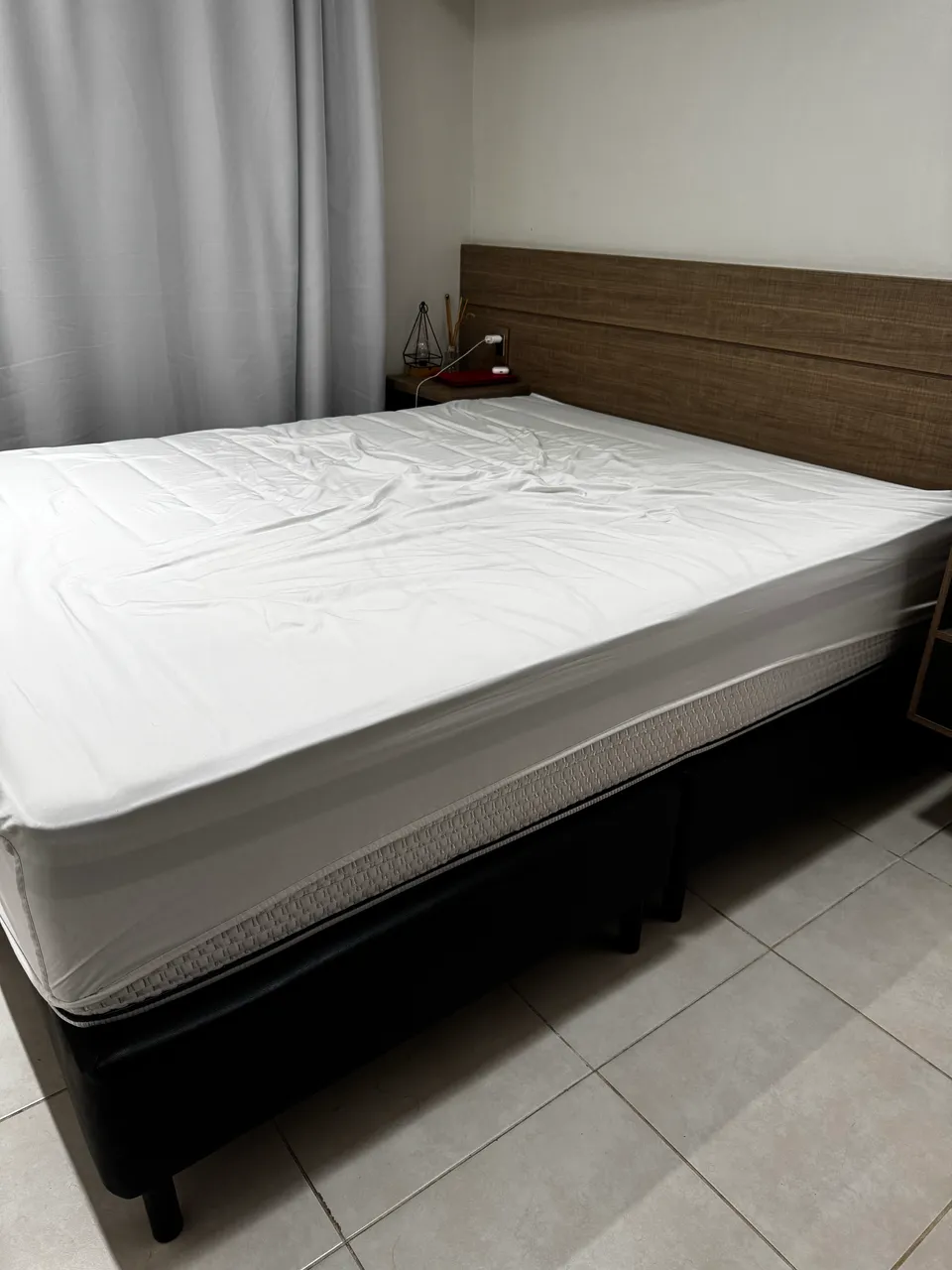 Cama box tamanho Queen, com colchão e base Ortobom Liberty com menos de 2 anos de uso, ainda na garantia por mais um ano.