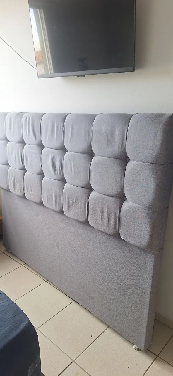 Linda cabeceira estofada, ideal para transformar seu quarto em um ambiente sofisticado e aconchegante. Toda perfeita, usada , mas em otimo estado .
