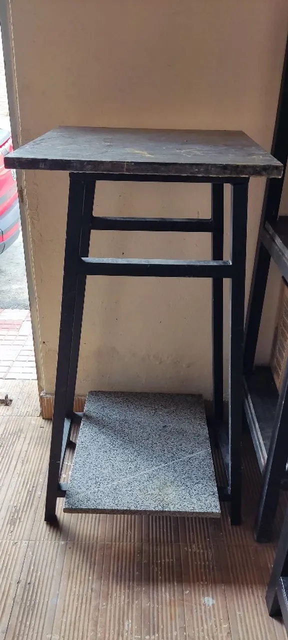 Escrivaninha de design industrial com prateleira inferior, ideal para otimizar espaços e adicionar um toque moderno ao seu ambiente de trabalho ou estudo.