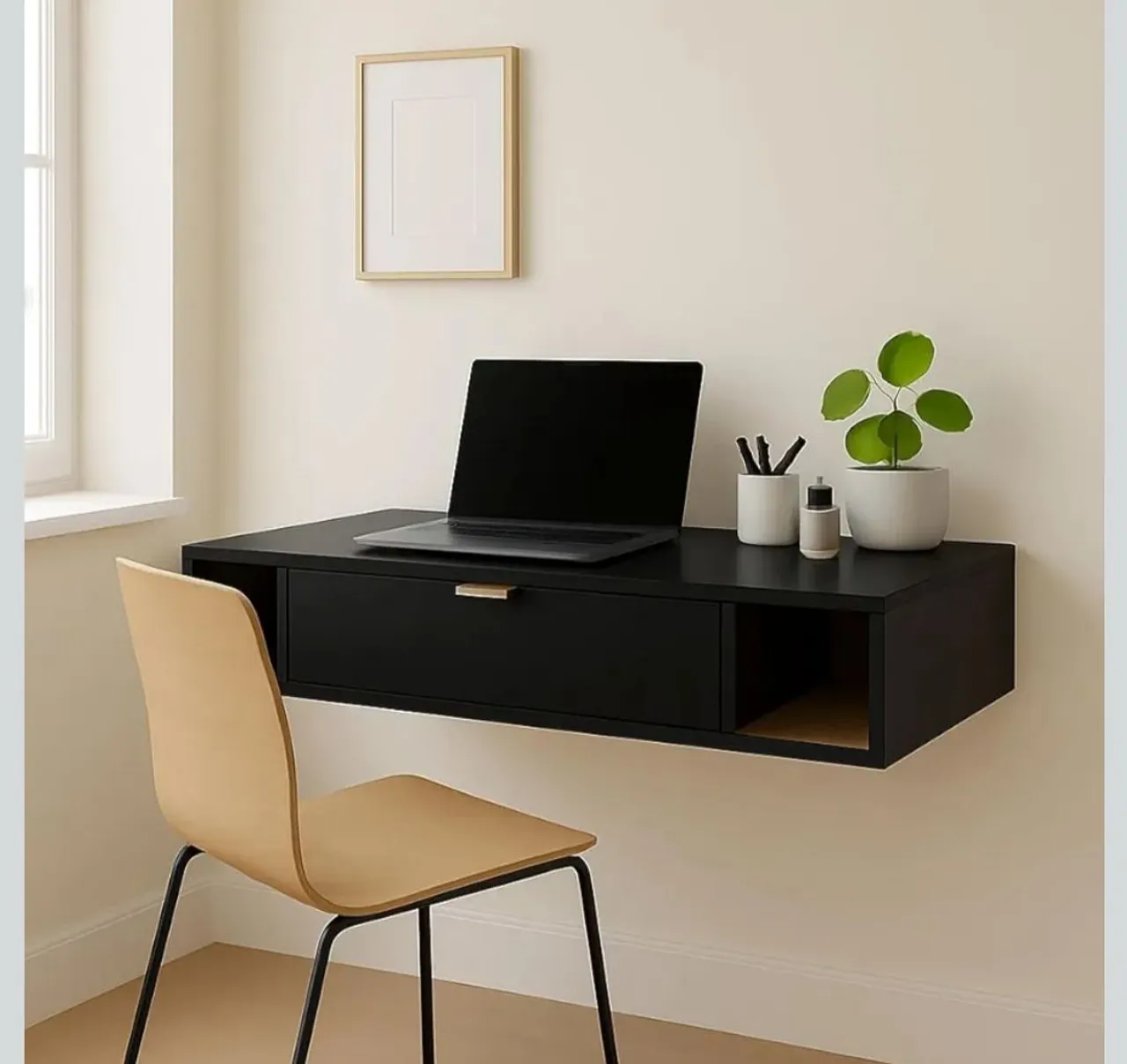 Apresentamos a escrivaninha suspensa preta, perfeita para otimizar seu espaço com elegância e funcionalidade. Seu design moderno e minimalista se adapta a qualquer ambiente, oferecendo um espaço de trabalho prático e charmoso. Ideal para quem busca organização e estilo!