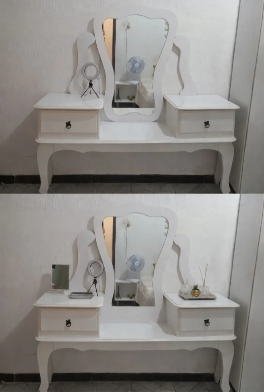 Linda penteadeira branca de luxo, perfeita para adicionar elegância e funcionalidade ao seu quarto. Design sofisticado e amplo espaço para organizar seus itens de beleza. Ideal para quem busca um toque de requinte e praticidade.