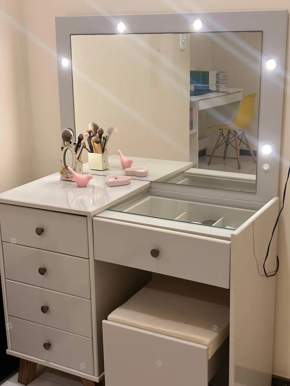 Linda penteadeira moderna, ideal para organização e maquiagem. Produzida em MDF de alta qualidade, com pés 100% em madeira, garantindo mais resistência e durabilidade.