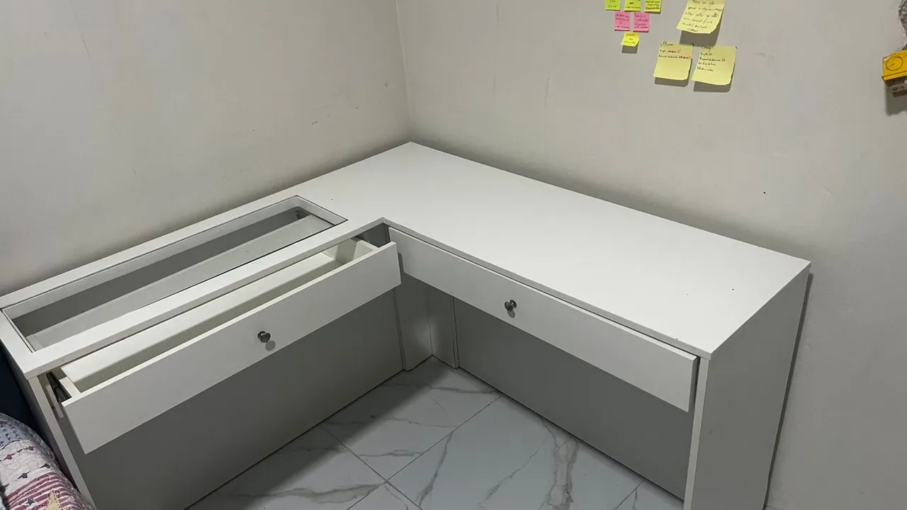 Linda penteadeira escrivaninha, ideal para otimizar seu espaço com elegância e funcionalidade. Design moderno e prático, perfeita para estudos e maquiagens. Aproveite!