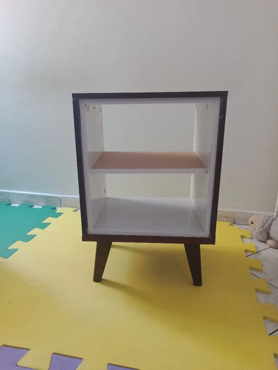 Charmoso criado mudo retrô, perfeito para adicionar um toque de elegância ao seu quarto. Com design clássico e funcional, este móvel é ideal para organizar seus pertences com estilo.